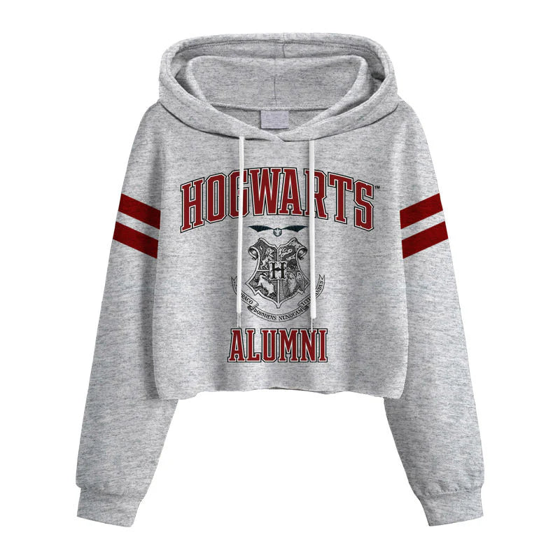 Celebrate your Hogwarts legacy with this officially licensed Harry Potter cropped hoodie. Made from a comfy 50% cotton and 50% polyester blend in heather grey, it features a magical design straight from the Wizarding World. Perfect for showing off your alumni status with a playful twist!