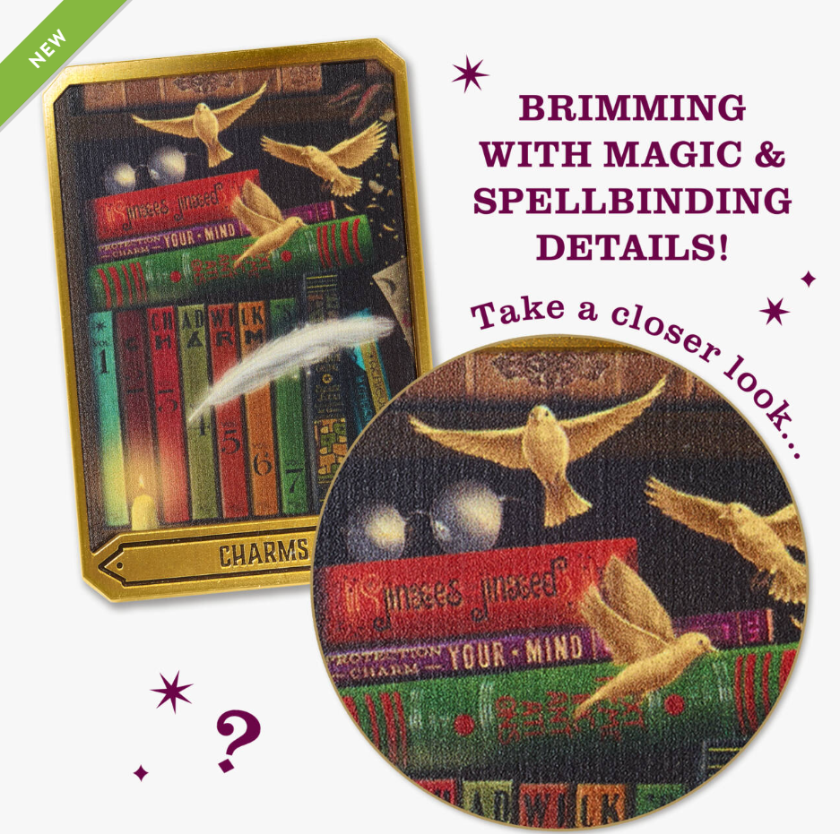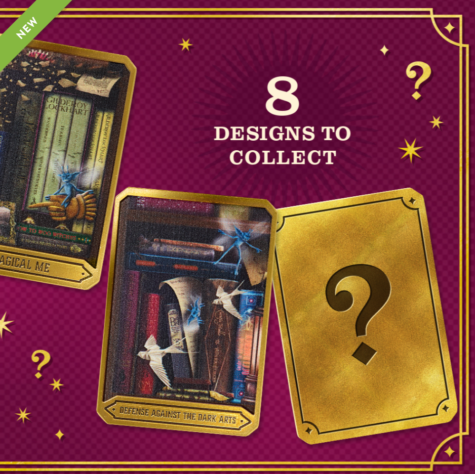 Each design showcases beautifully illustrated shelves brimming with easter eggs and enchanting book covers crafted by MinaLima for the Harry Potter and Fantastic Beasts films. With eight collectible designs to discover - from Potions & Herbology to Defence Against the Dark Arts, plus two secret surprises - you'll want to gather them all.