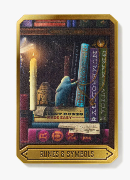 Step into MinaLima's whimsical world with this mystery pin badge featuring a hidden slice of the Wizarding Library.