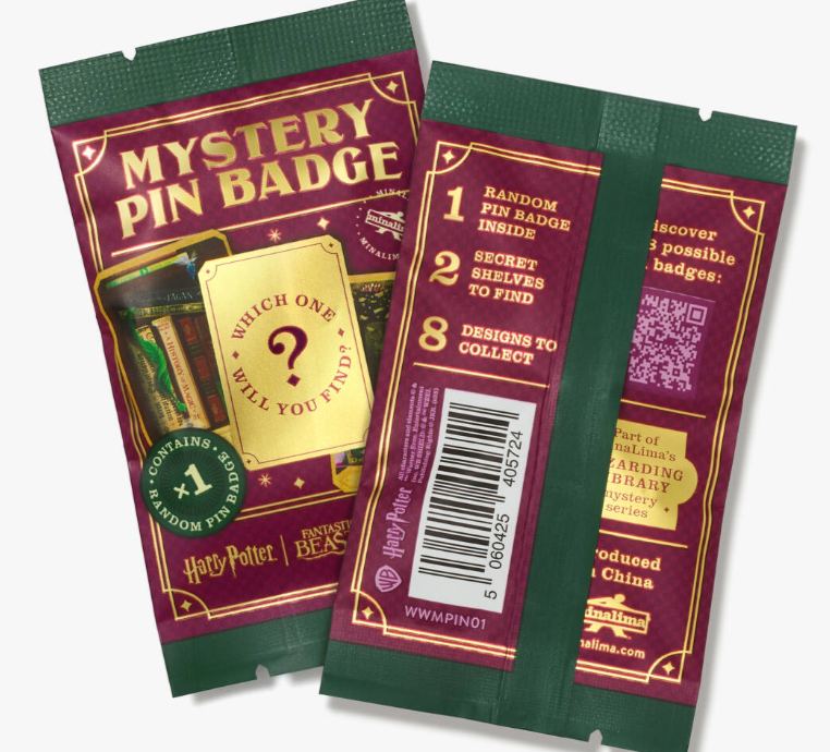 Measuring 4.3cm x 3.2cm, this delightful enamel pin brings a touch of cinematic magic to your collection. Open the sealed pack to reveal which literary treasure awaits.