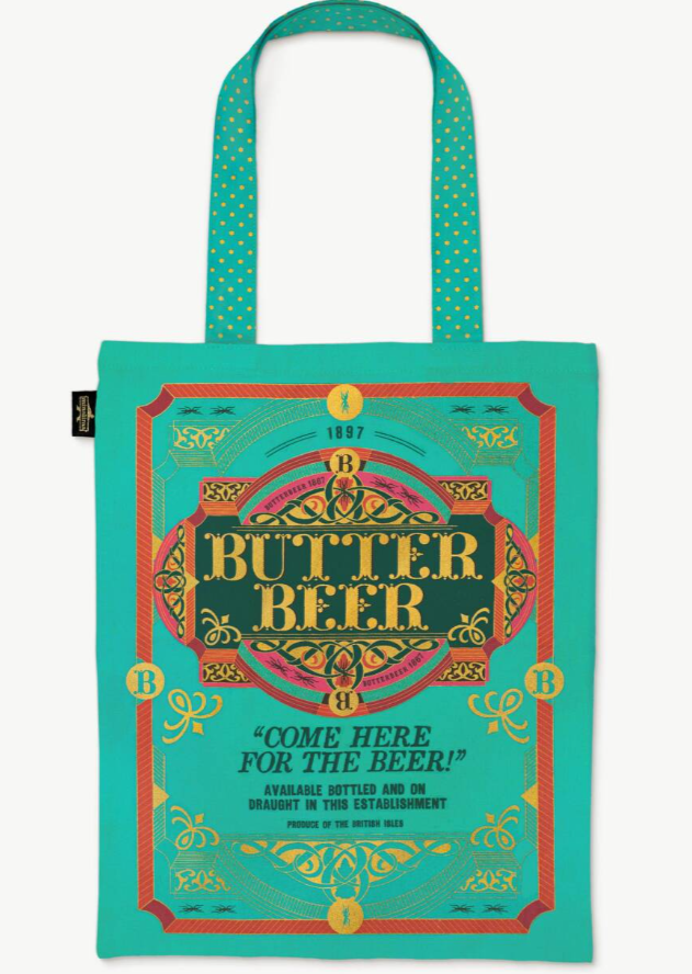 Carry your favourite wizarding beverages in style with this enchanting Butterbeer tote bag, inspired by the authentic MinaLima graphic prop from 'Fantastic Beasts: The Crimes of Grindelwald'.