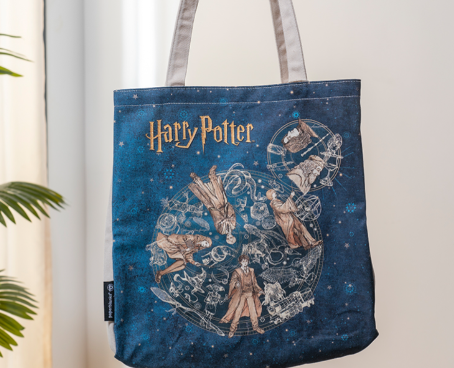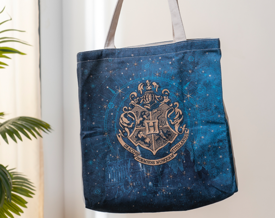 Celebrate the legendary Golden Trio with this spacious canvas tote bag inspired by Hogwarts School of Witchcraft and Wizardry.