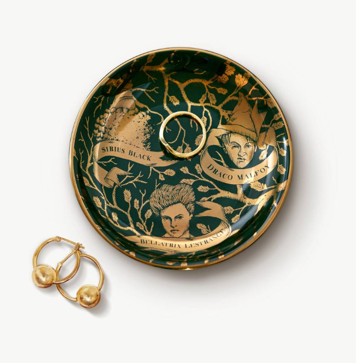 Keep your wizarding treasures safe in style with this enchanting trinket dish inspired by Sirius Black's legendary family tree. Crafted from durable porcelain with a lustrous gloss finish and gleaming gilded rim, it captures the dark elegance of the iconic Black Family Tapestry.