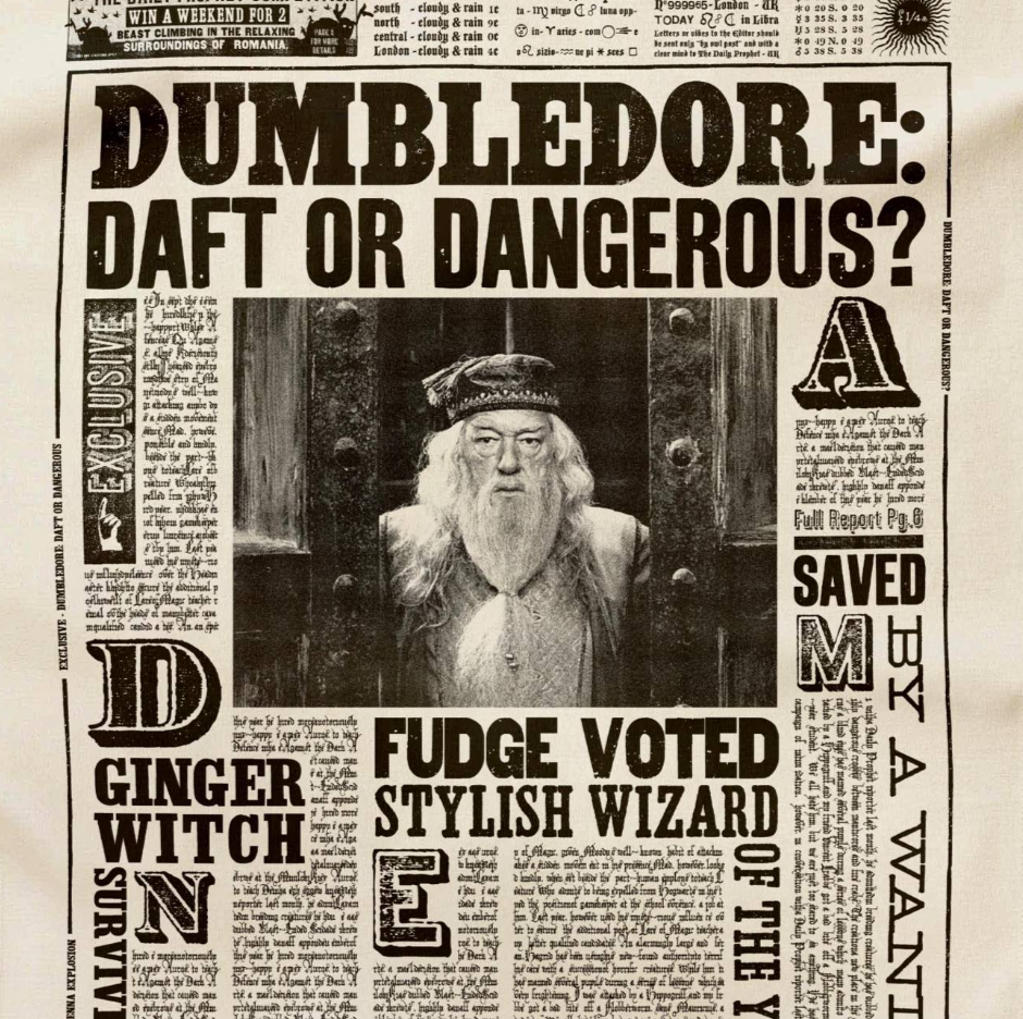 Bring a touch of wizarding world charm to your kitchen with this enchanting tea towel, featuring The Daily Prophet's iconic 'Dumbledore: Daft or Dangerous?' headline.