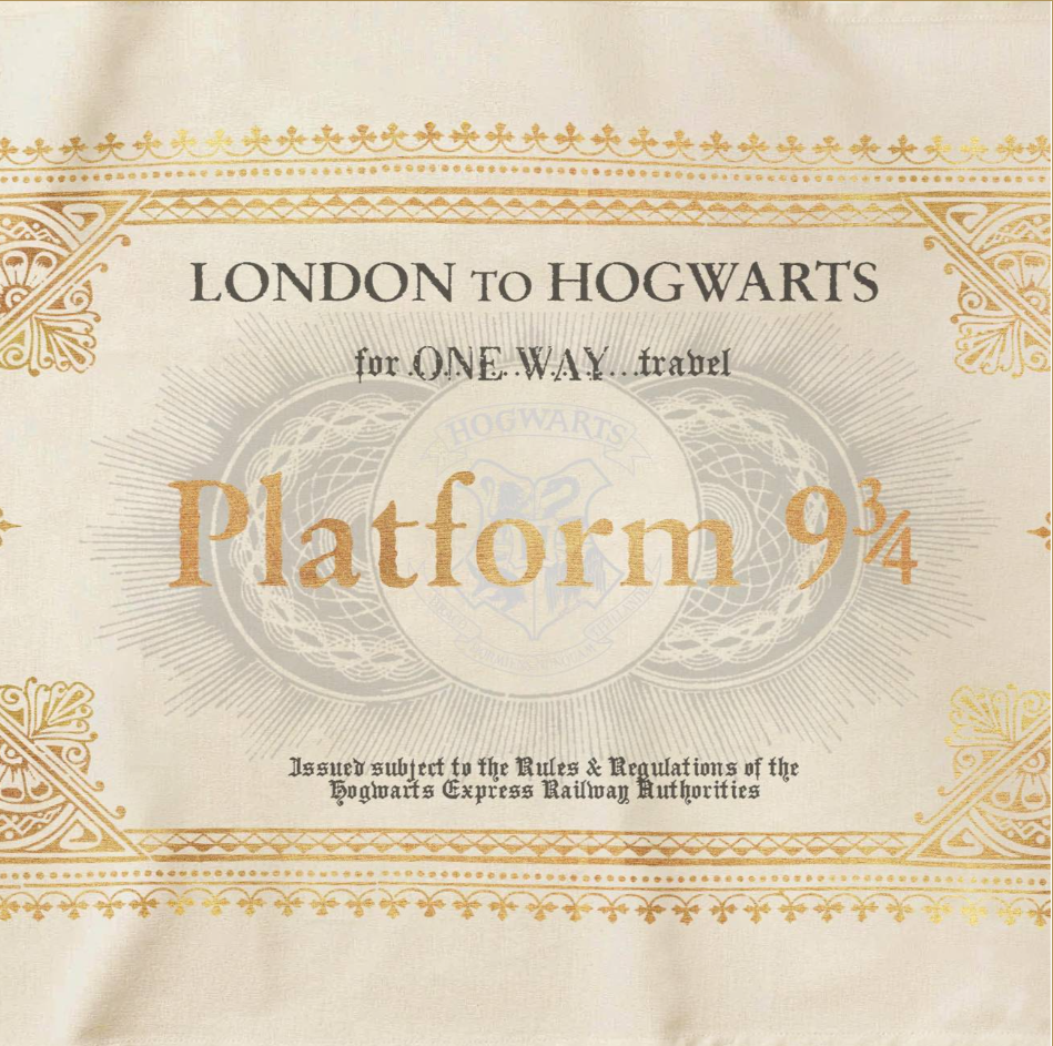 Transform your kitchen into a magical corner of the wizarding world with this enchanting tea towel. Featuring the iconic Hogwarts Express ticket design with shimmering gold metallic detailing, it's inspired by the authentic graphic prop created by MinaLima for the original Harry Potter film.