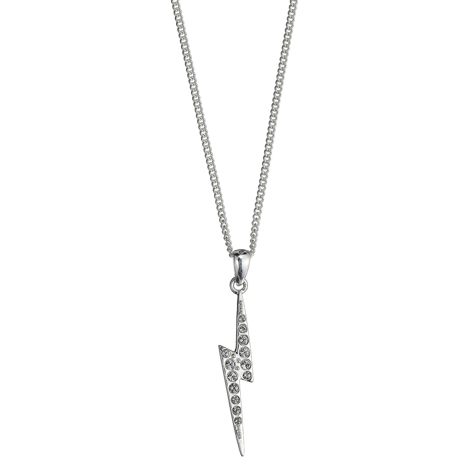 Lightning Bolt Necklace - Sterling Silver Embellished with Crystals