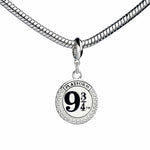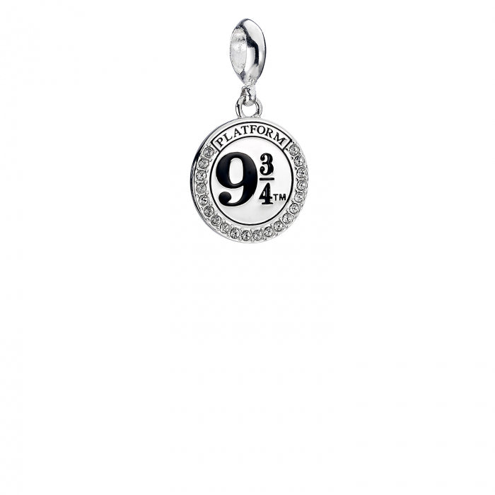 This slider charm is designed to replicate the famous Platform 9 3/4 sign at Kings Cross Station where Hogwarts students gain access to the Hogwarts Express from the Harry Potter films and can be clipped to a link bracelet or necklace. There is a matching necklace in this collection.