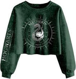 Embrace your house pride with this enchanting cropped sweater featuring the Slytherin constellation design. Perfect for fans who wear their wizarding allegiance with style, this piece combines cosy comfort with celestial flair. The cropped silhouette offers a modern twist on classic house spirit, making it ideal for layering or pairing with high-waisted bottoms. Whether you're heading to a themed gathering or simply celebrating your love for all things magical, this sweater lets your Slytherin spirit shine bright as the stars themselves.