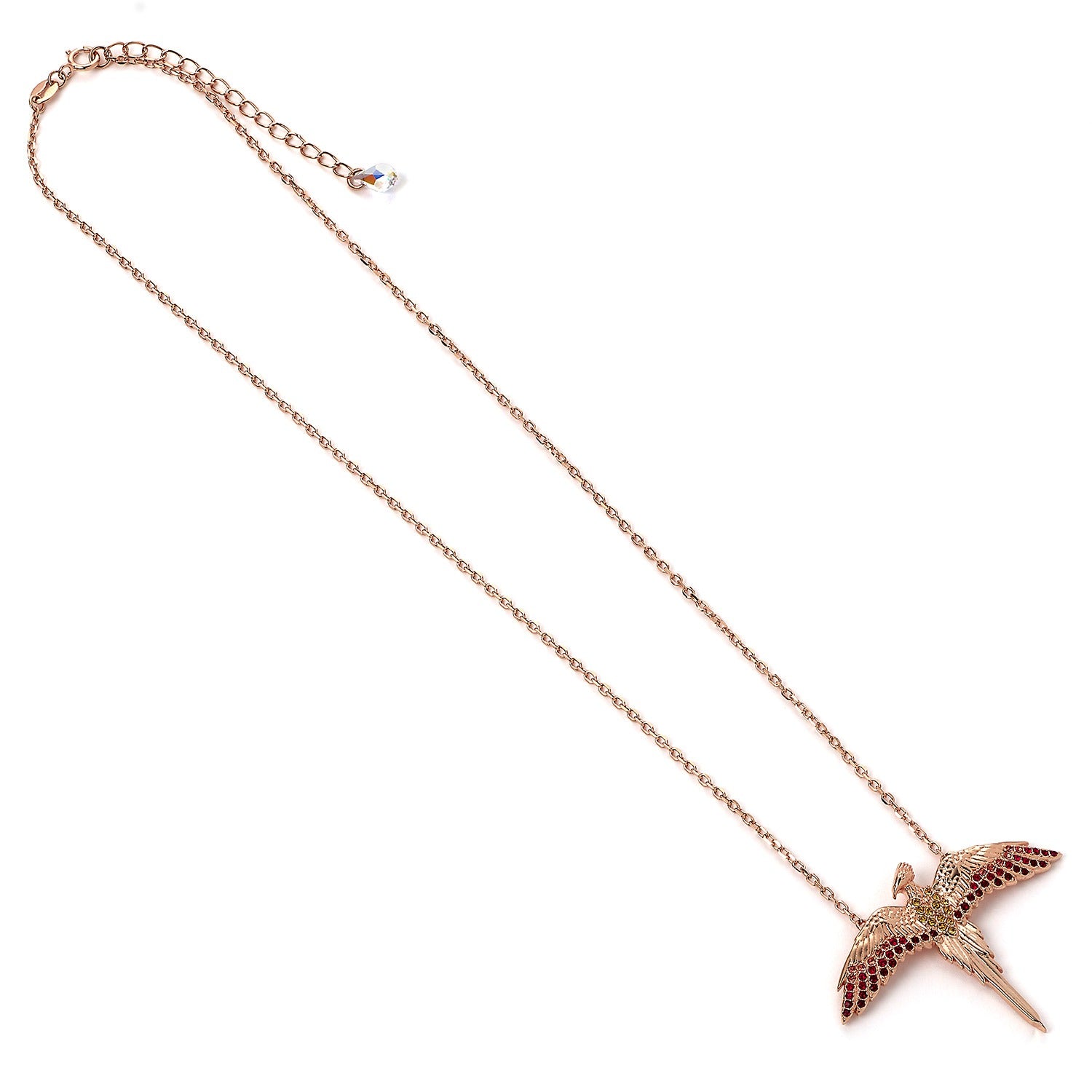 Wear a piece of wizarding magic with this stunning Fawkes necklace, featuring the legendary phoenix in rose gold-plated sterling silver.