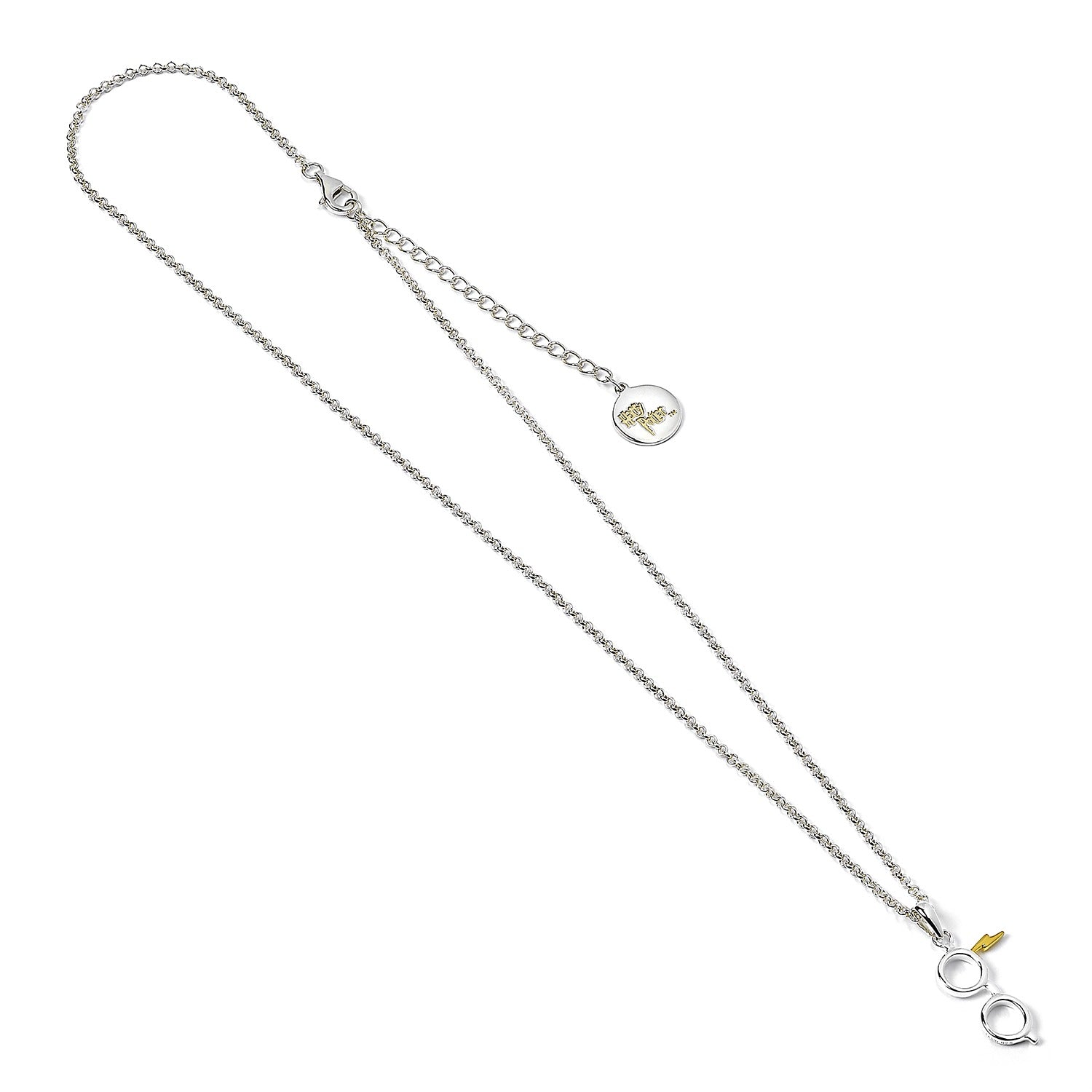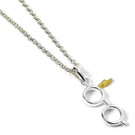 Celebrate your wizarding spirit with this stunning Sterling Silver necklace featuring two iconic Harry Potter symbols - delicate glasses and a gleaming gold-plated lightning bolt.